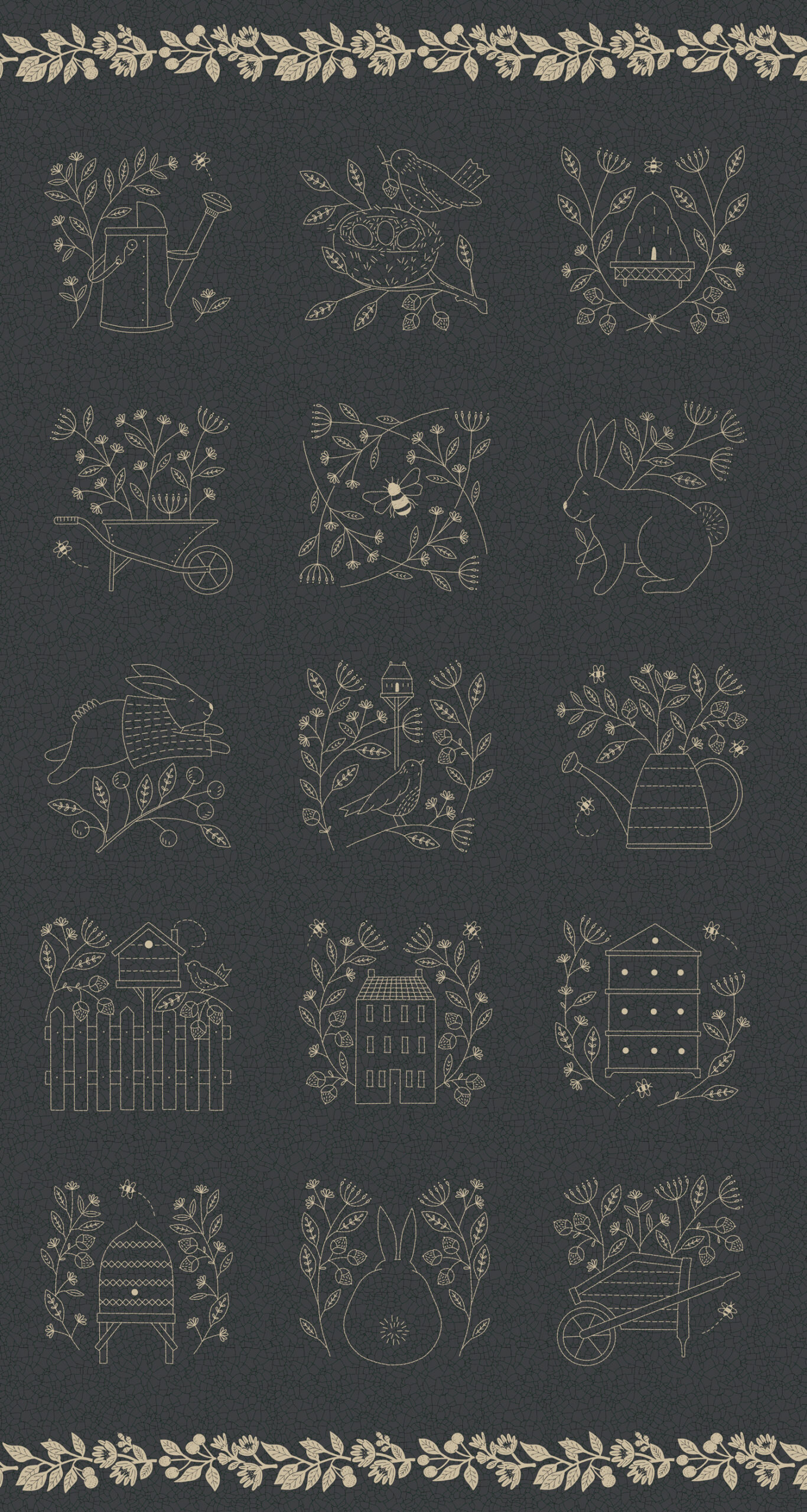 Bloom And Grow Embroidery Panel Black 24″ Panel | Kathy Schmitz | Moda Fabrics | 7055 14 | Sold as a Panel