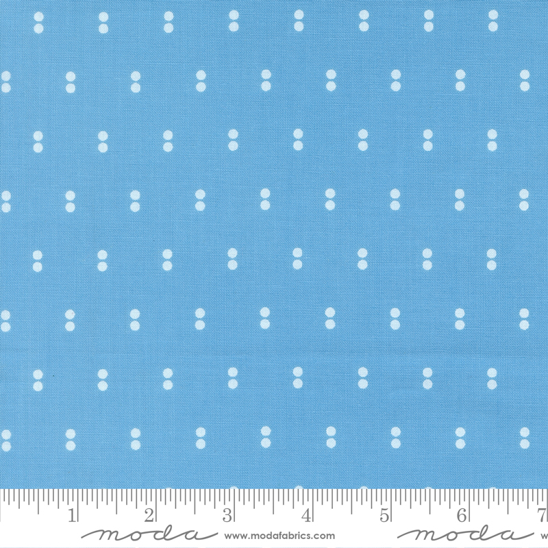 Bluebirds Nest Dot Dash Mid Blue | Kansas Troubles Quilters | Moda Fabrics | 9807 34 | Sold in 1/2 Yd