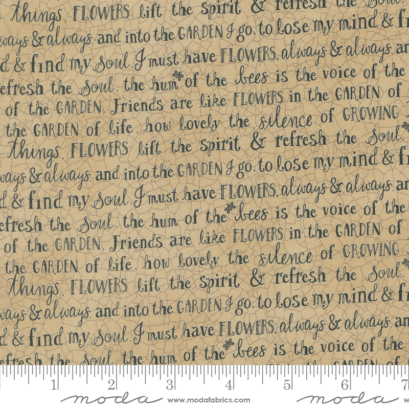 Bloom And Grow Garden Notes Tan | Kathy Schmitz | Moda Fabrics | 7052 14 | Sold in 1/2 Yd