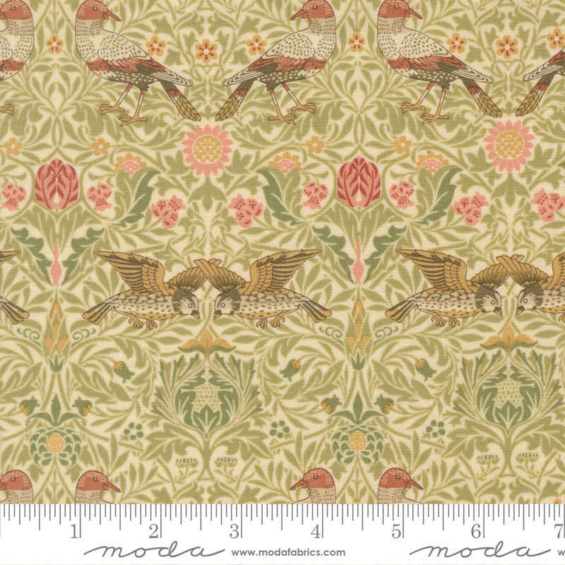 Morris Muse Birds Damask Parchment | Barbara Brackman | Moda Fabrics | 13381 11 | Sold in 1/2 yd