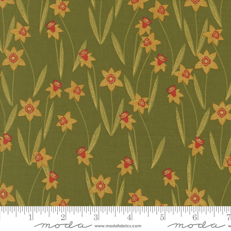 Bee Garden Metallic Darling Daffodils Ivy | Gingiber | Moda Fabrics | 48413 12M | Sold in 1/2 Yd