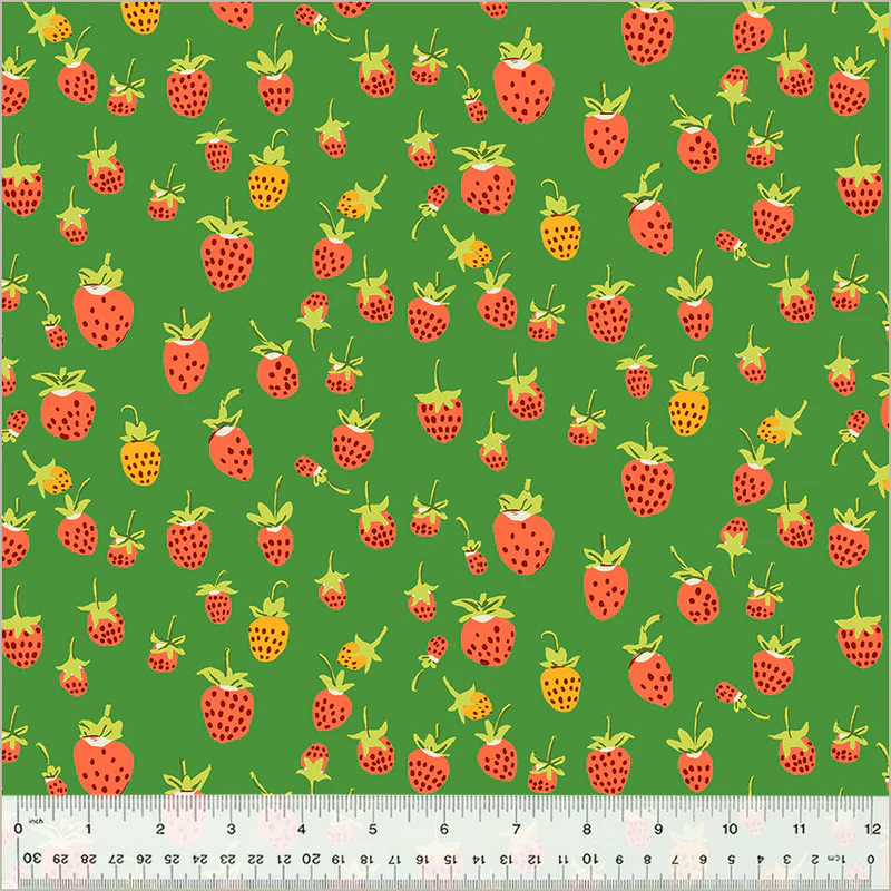 Studio Edit Strawberries Green By Heather Ross | Windham Fabrics | 37024D-5 | Sold in 1/2 Yd