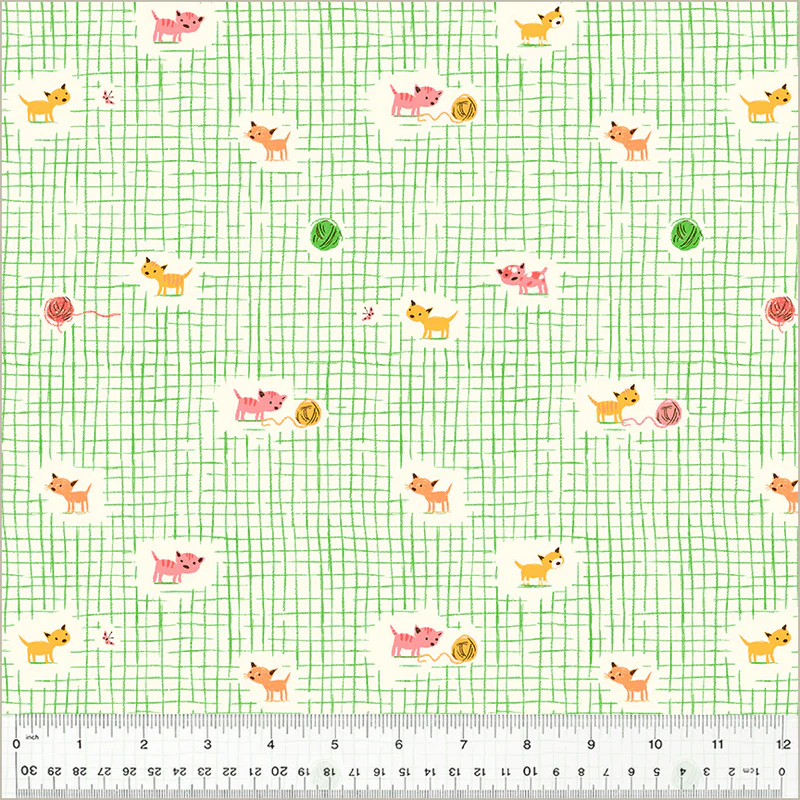 Studio Edit Kitten Plaid Green By Heather Ross | Windham Fabrics | 40929D-2 | Sold in 1/2 Yd