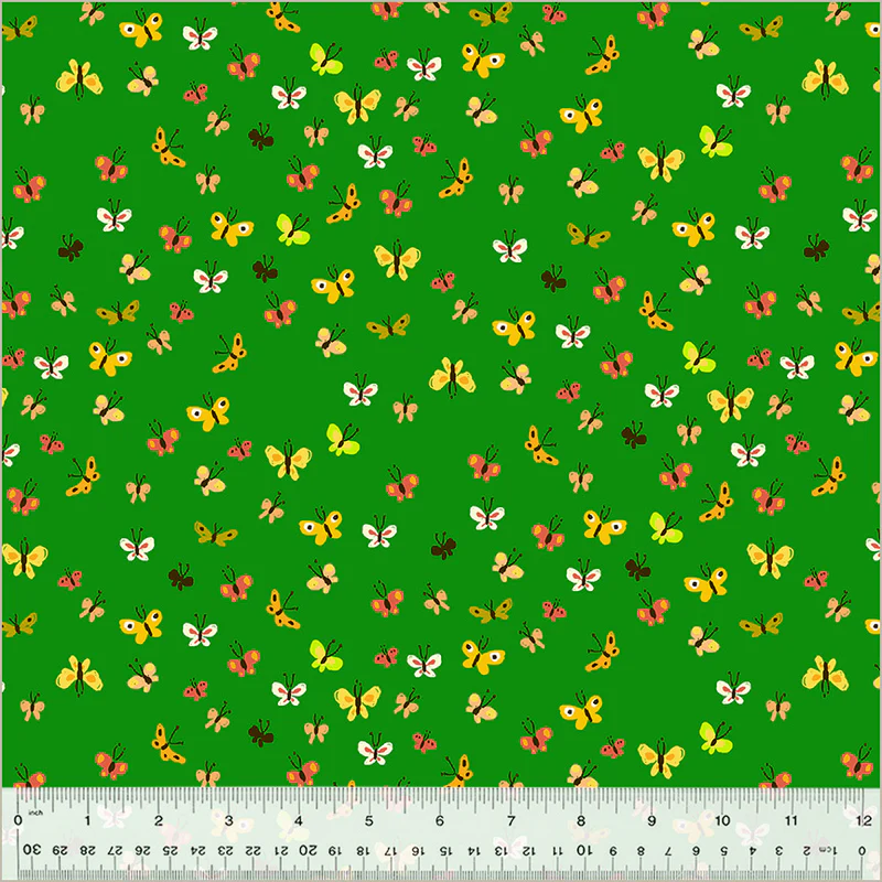 Studio Edit Butterflies Green By Heather Ross | Windham Fabrics | 40933D-2 | Sold in 1/2 Yd