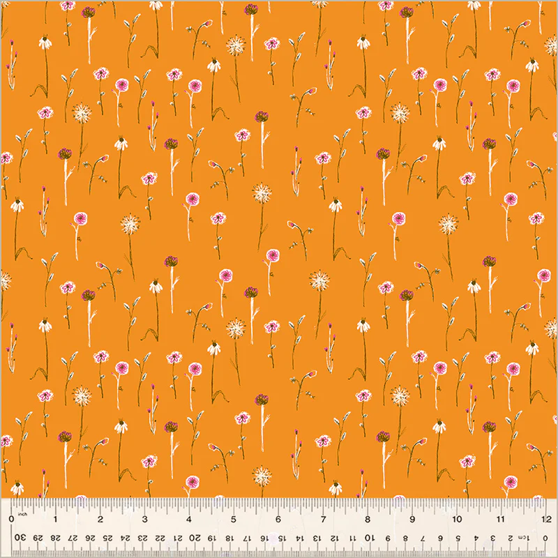 Studio Edit Wildflower Orange By Heather Ross | Windham Fabrics | 52757D-12 | Sold in 1/2 Yd