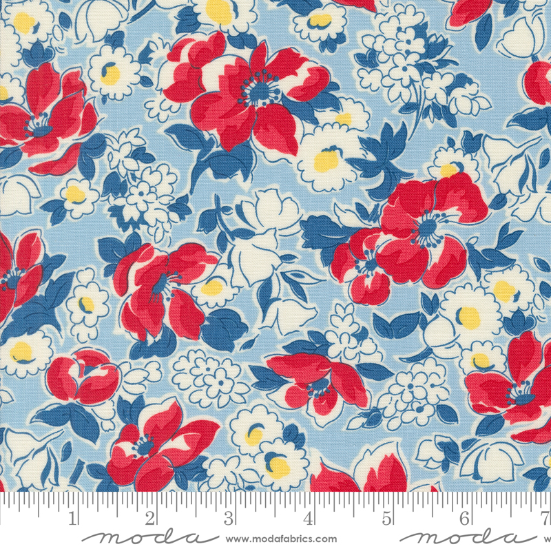 Time And Again Cheerful Florals Sky | Linzee Kull McCray | Moda Fabrics | 23361 13 | Sold in 1/2 Yd